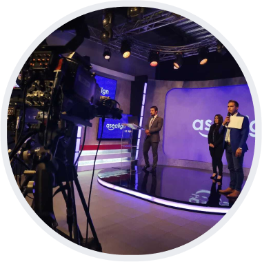 Estudio personalizable para eventos presenciales, virtuales o mixtas.